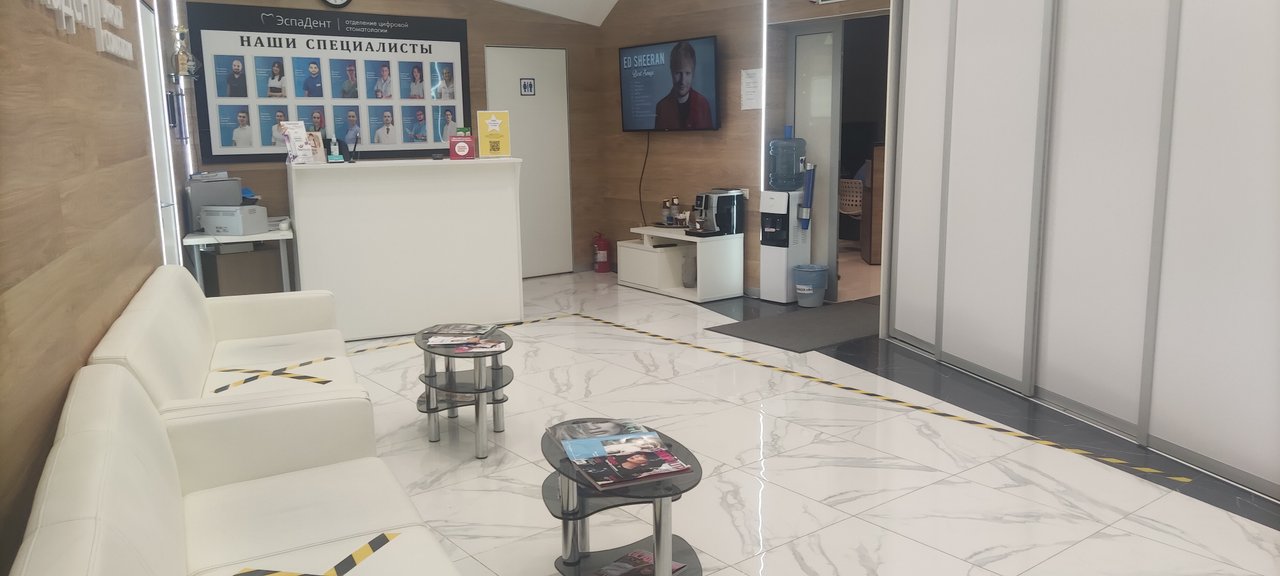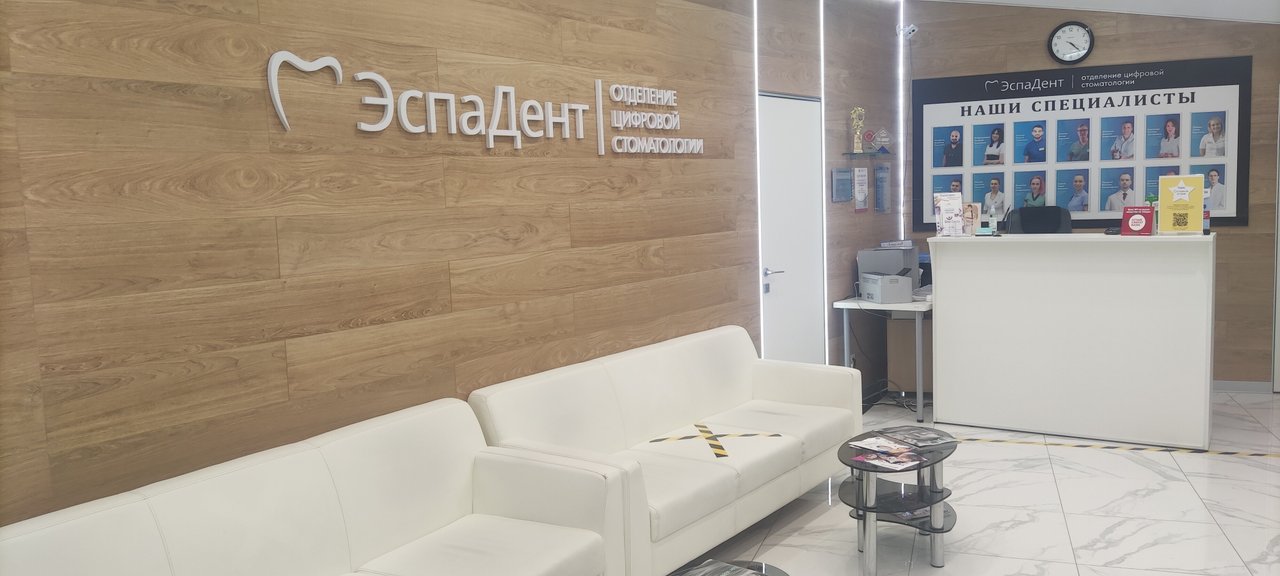 Эспадент люблю за приятную не больничную обстановку! С первого посещения мне было комфортно. Большой светлый холл, мягкие диваны, чистота и красота. Нет ничего лишнего и вычурного. Но врачи эту атмосферу делают еще более располагающей. Лечат на сто баллов из ста. Я проходила несколько процедур, если по порядку - лечение пульпита, потом кариеса, чистка, имплантация. После такого опыта могу лично рекомендовать Эспадент.